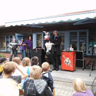 Ich zeige eine Mischung aus Bauchreden und Zaubern, wobei die Kinder aktiv mit eingebunden werden. Es gibt viel zu staunen aber auch das Lachen hat einen hohen Stellenwert, vor allem, wenn die Kinder sehen, wie mein frecher Vogel Pedro und mein Hase Horst Schabernack mit mir treiben.