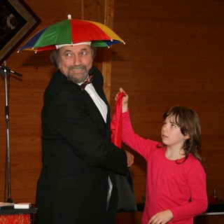 Ich zeige eine Mischung aus Bauchreden und Zaubern, wobei die Kinder aktiv mit eingebunden werden. Es gibt viel zu staunen aber auch das Lachen hat einen hohen Stellenwert, vor allem, wenn die Kinder sehen, wie mein frecher Vogel Pedro und mein Hase Horst Schabernack mit mir treiben.